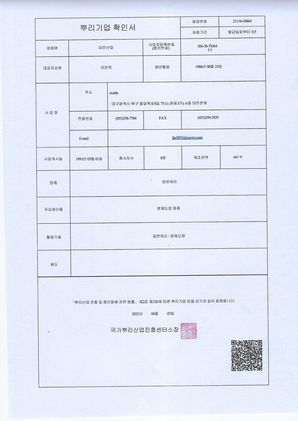 뿌리기업 확인서 페이지 정보 작성자최고관리자 댓글 0건 조회 94회 작성일 22-03-30 10:58 본문 목록 이전글이전글제목입니다. 17.07.14 다음글다음글제목입니다. 17.07.14 댓글목록 댓글목록 등록된 댓글이 없습니다.