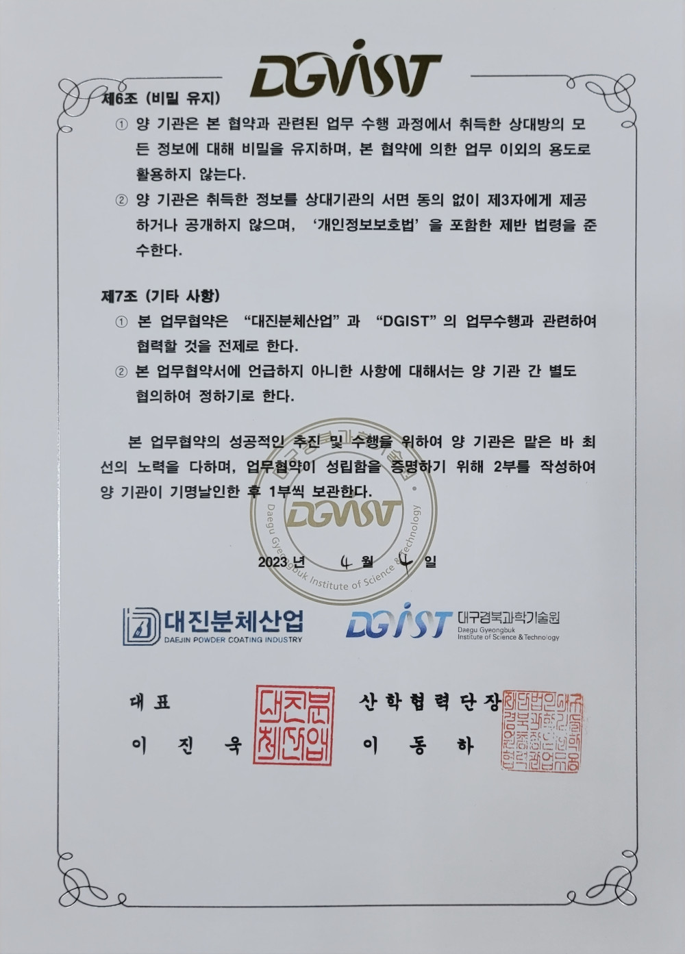 DGIST 대구경북과학기술원 업무협약 페이지 정보 작성자최고관리자 댓글 0건 조회 153회 작성일 23-04-06 22:45 본문 목록 이전글이전글제목입니다. 17.07.14 다음글다음글제목입니다. 17.07.14 댓글목록 댓글목록 등록된 댓글이 없습니다.