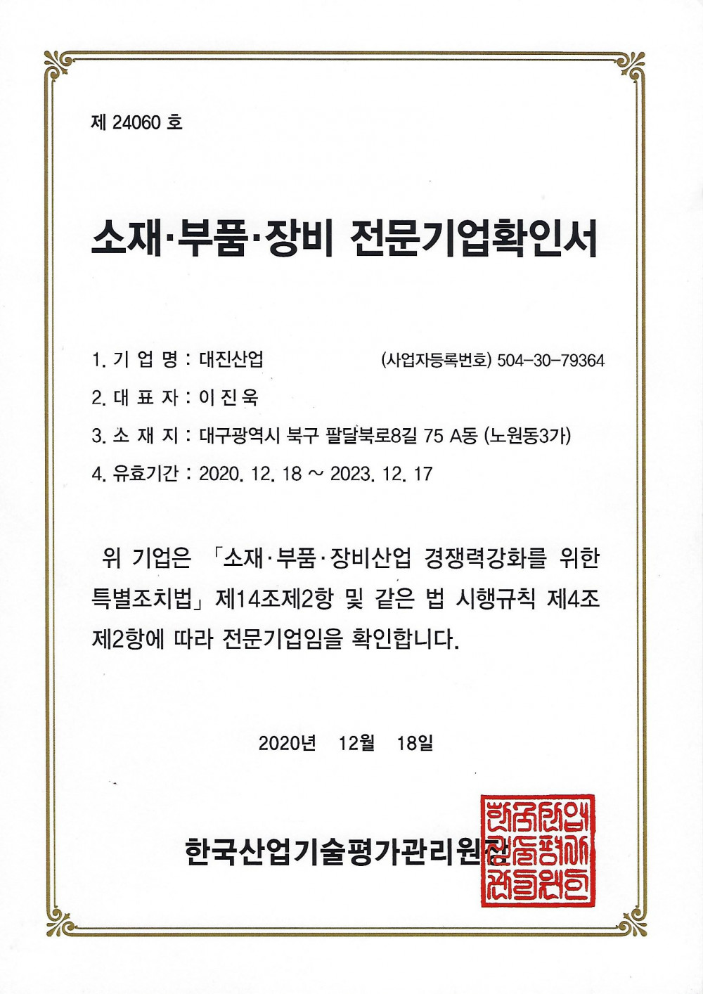 소재·부품·장비 전문기업확인서 페이지 정보 작성자최고관리자 댓글 0건 조회 104회 작성일 22-03-30 10:59 본문 목록 이전글이전글제목입니다. 17.07.14 다음글다음글제목입니다. 17.07.14 댓글목록 댓글목록 등록된 댓글이 없습니다.